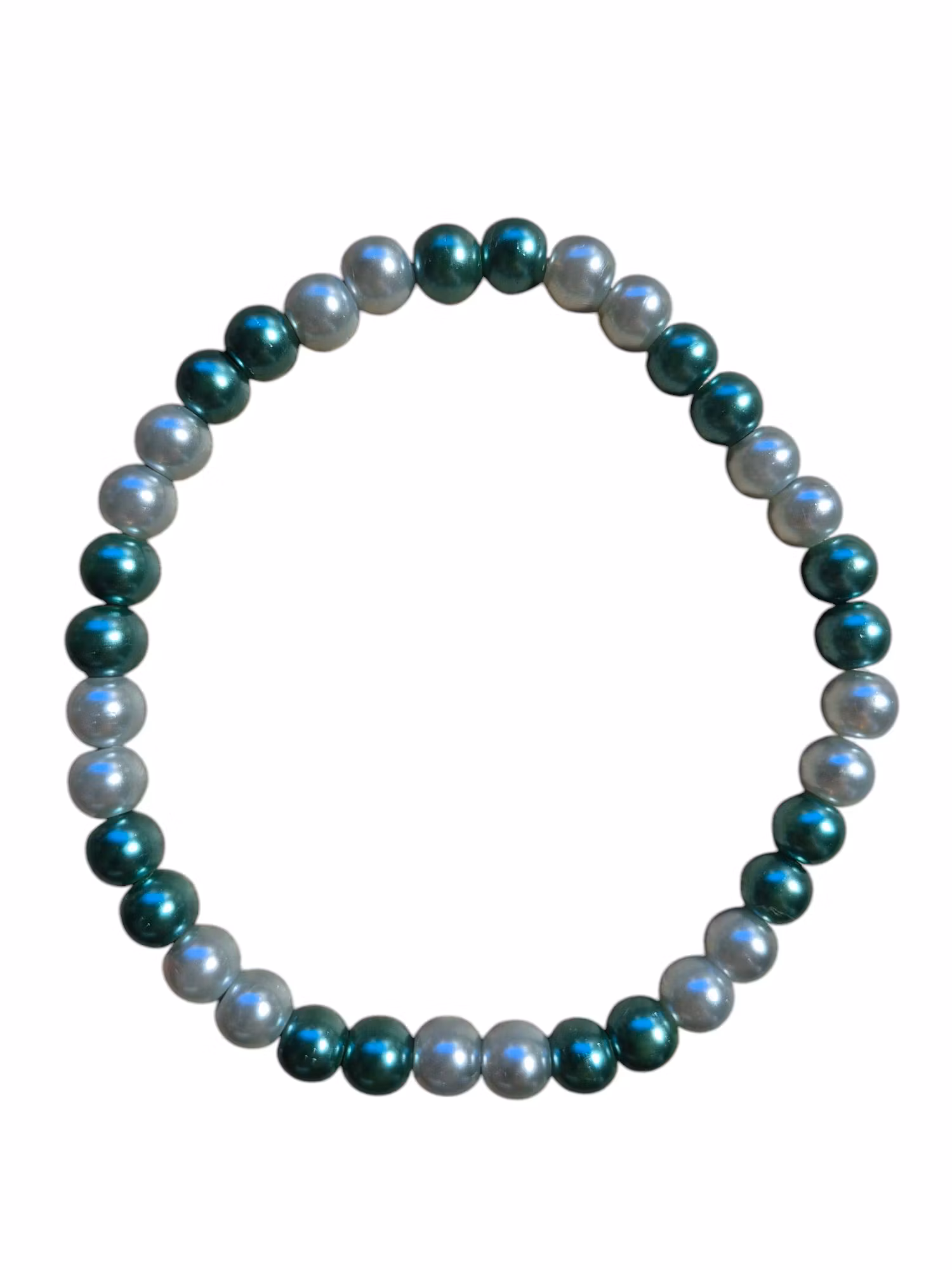 Pärlorna är knutna på ett band av elastisk tråd.
