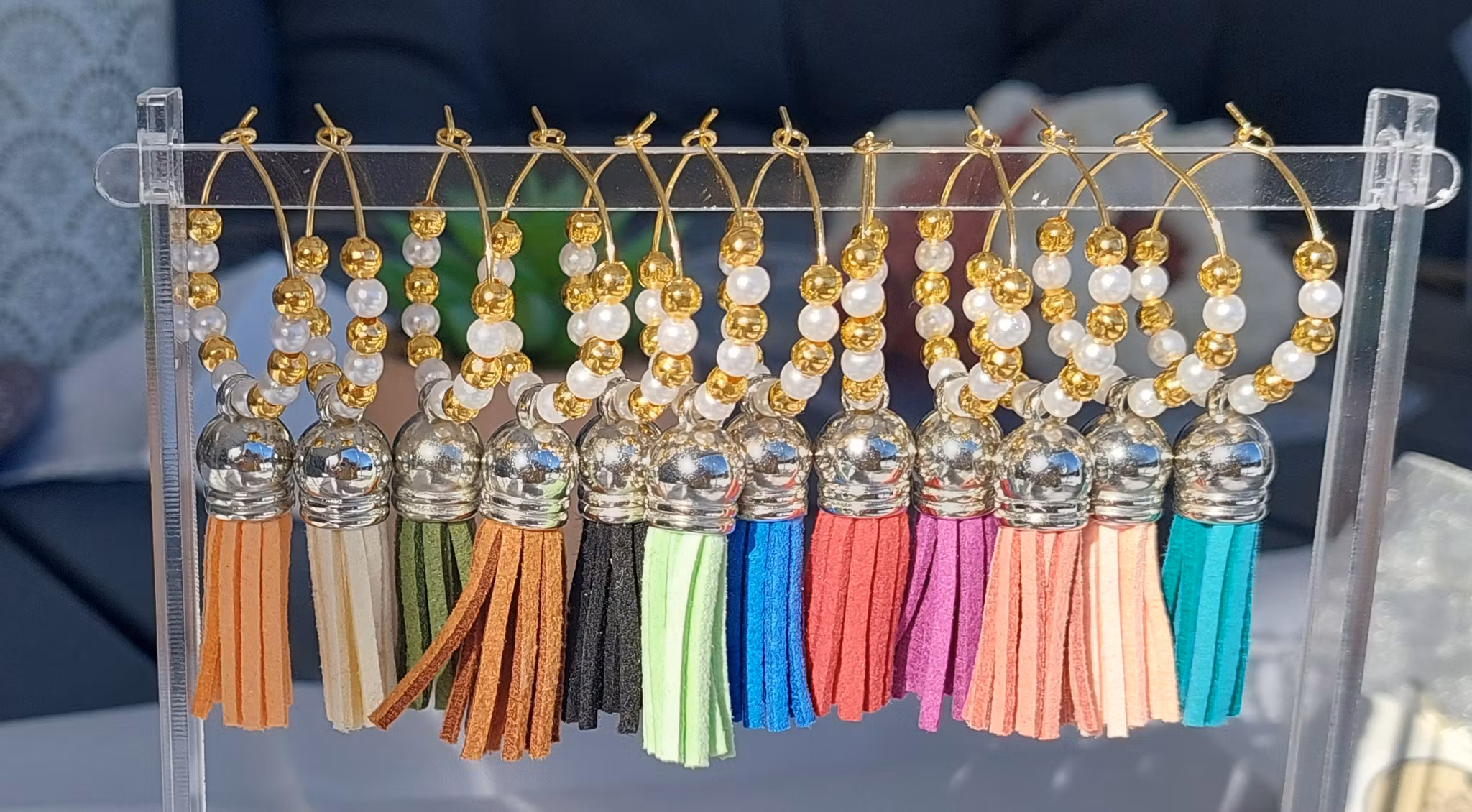 Man kan välja mellan silverfärgad stomme/pärlor och guldfärgad stomme/pärlor. Färgerna på tofsarna är 12 olika färger.