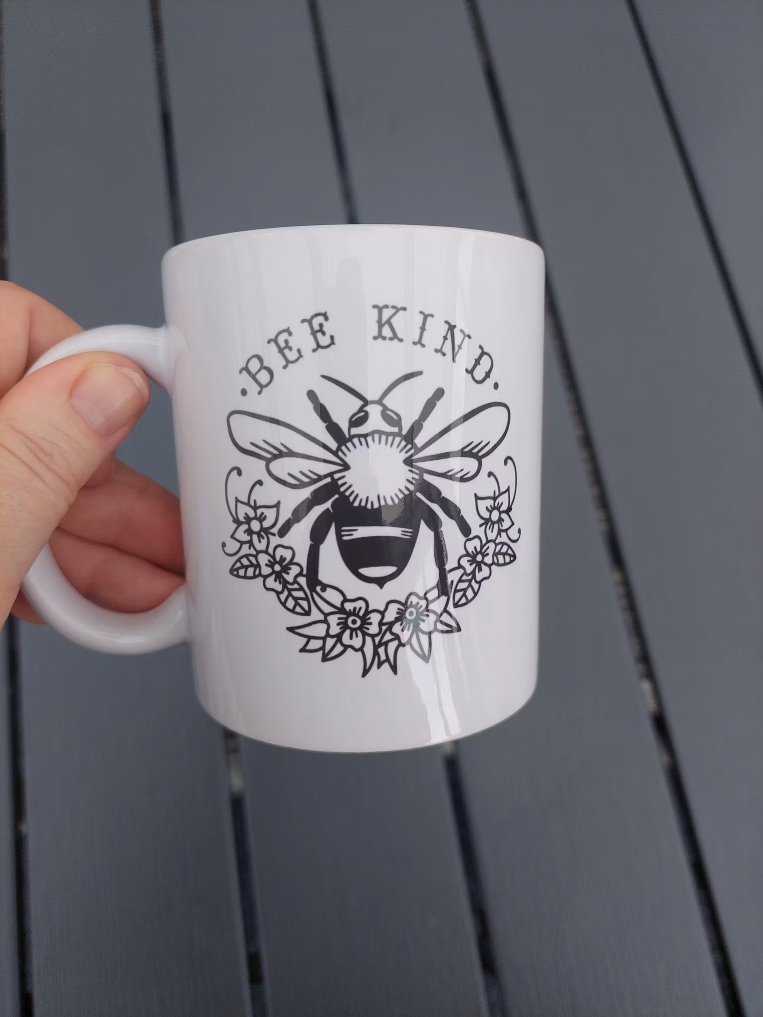 Hem › Med tryck på › Muggar › Mugg Bee Kind Mugg Bee Kind I lager. 0 kr 129 kr Köp Mugg 31 clTryck på båda sidorna.Muggen klarar att diskas i diskmaskin.