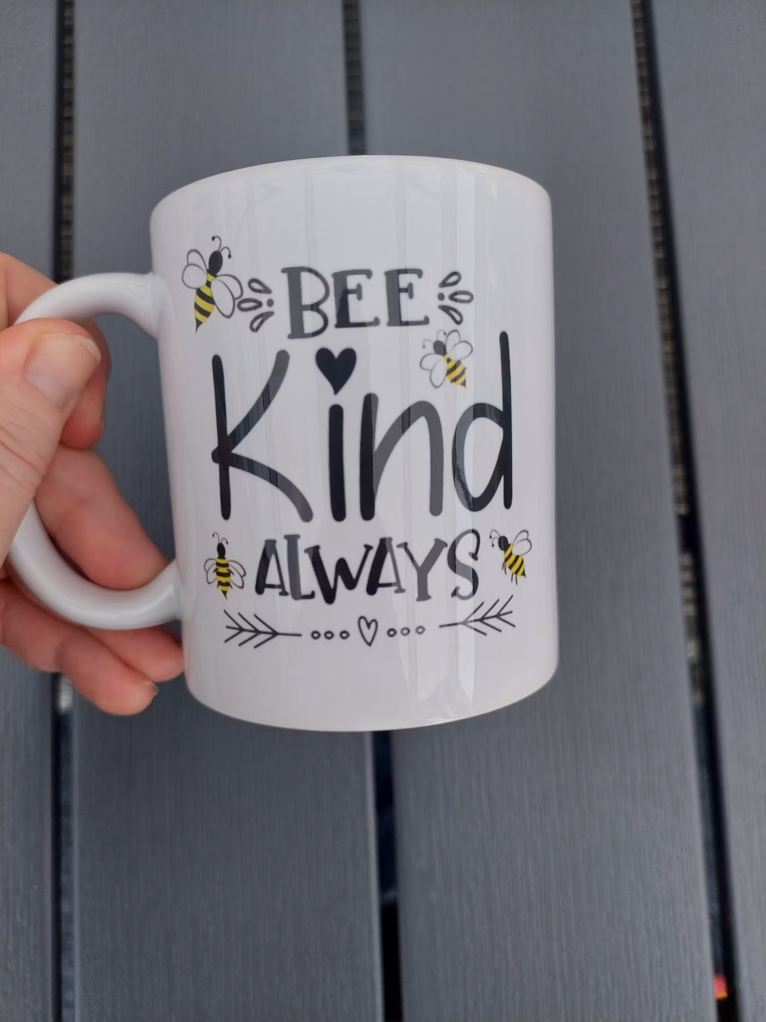 Hem › Med tryck på › Muggar › Mugg Bee kind always Mugg Bee kind always I lager. 0 kr 129 kr Köp Mugg 31 clTryck på båda sidorna.Muggen klarar att diskas i diskmaskin.