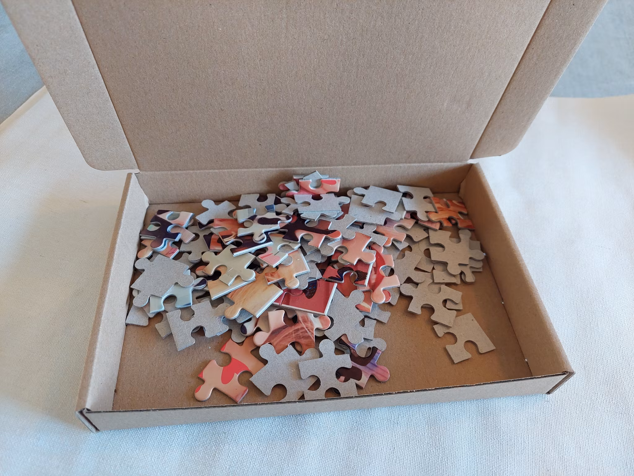 Pusslet kommer i en påse som ligger i en kartong.