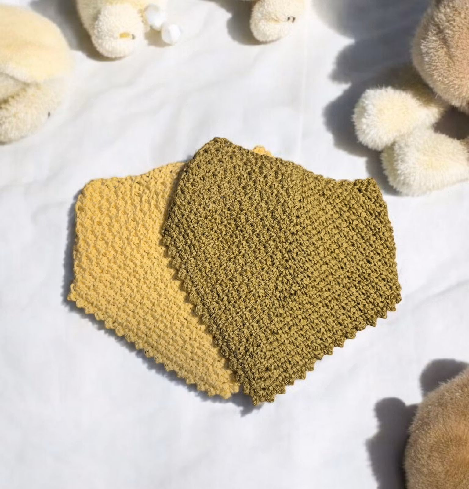 Dem är virkade i 100 % bomull. Garnet är OEKO-TEX® STANDARD 100-certifierat.