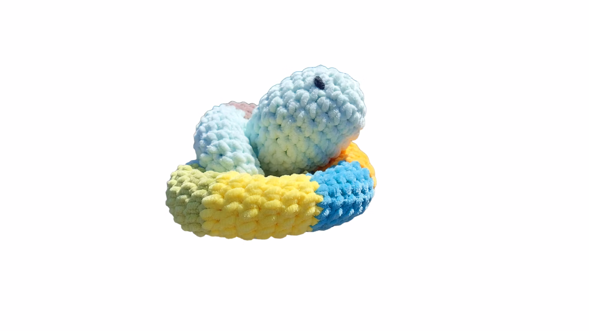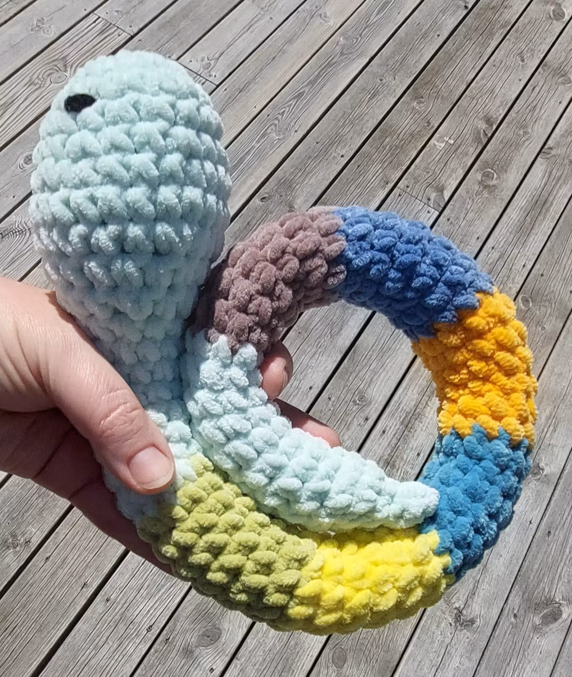 En söt liten orm, virkat i ett väldigt sammetsmjukt garn.