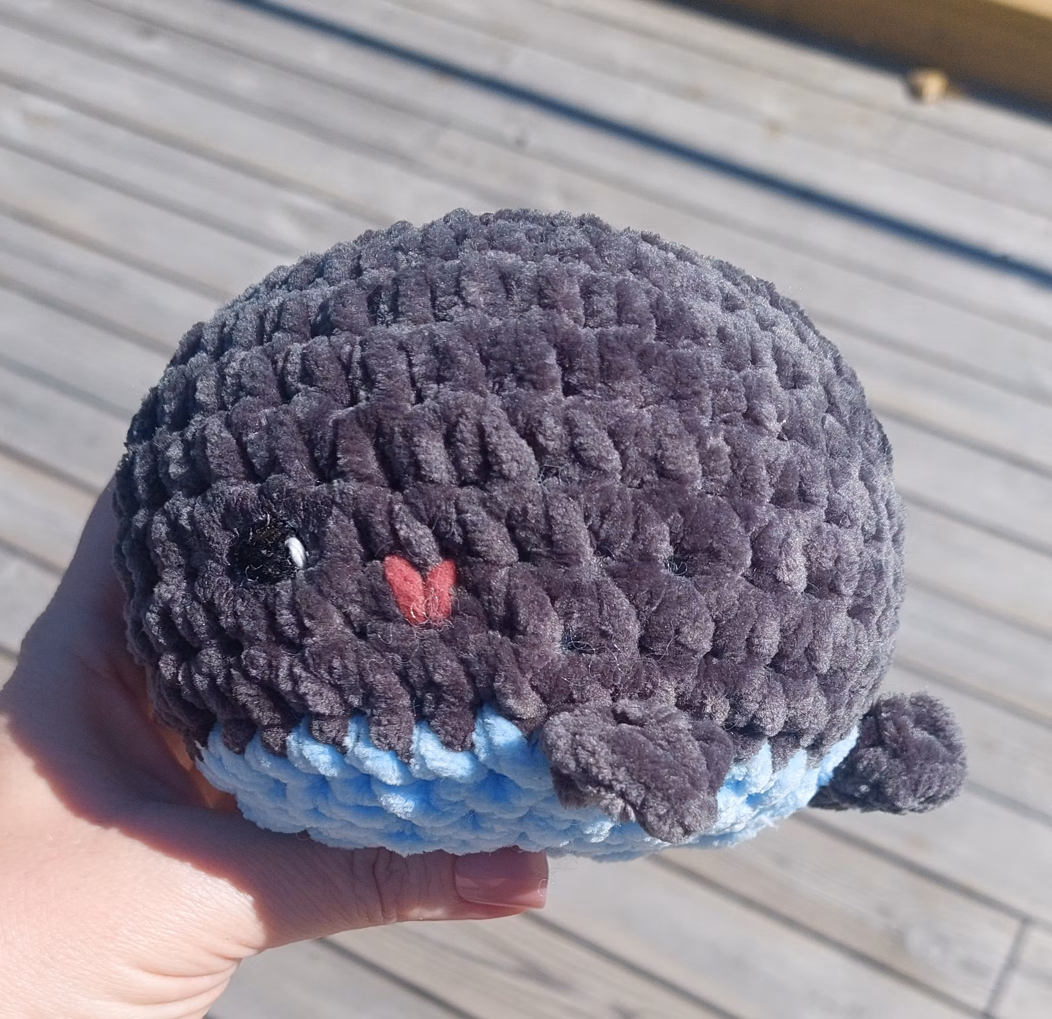 En söt val, virkat i ett väldigt sammetsmjukt garn.