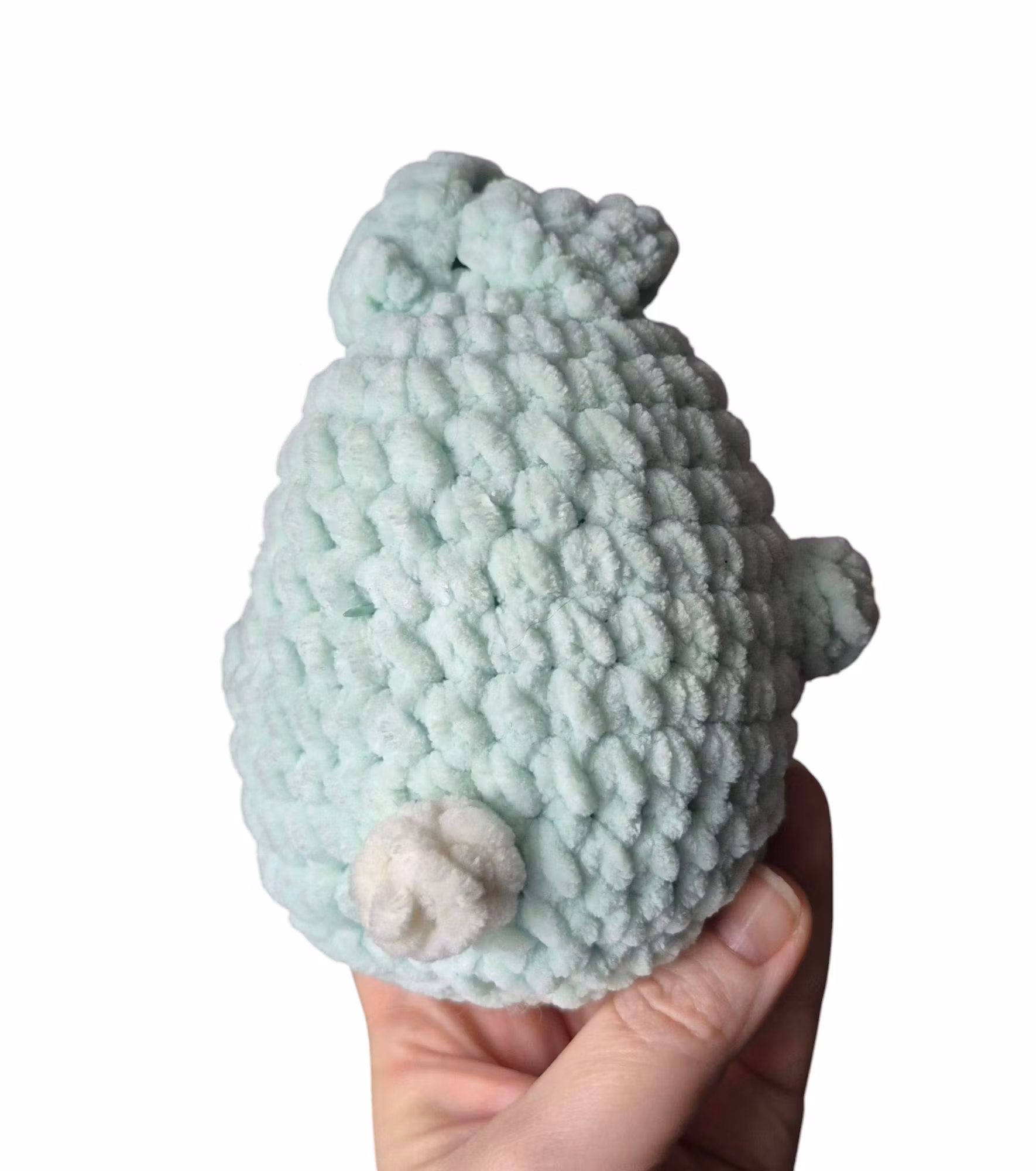 Ögonen är sydda även dem med garn så att även de minsta barnen kan ha dem att gosa med utan risk för att sätta något i halsen.