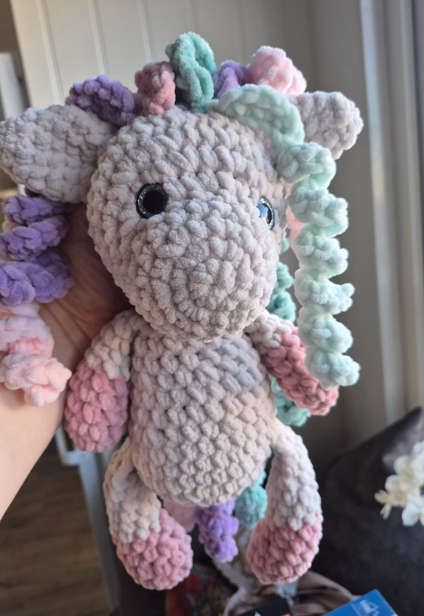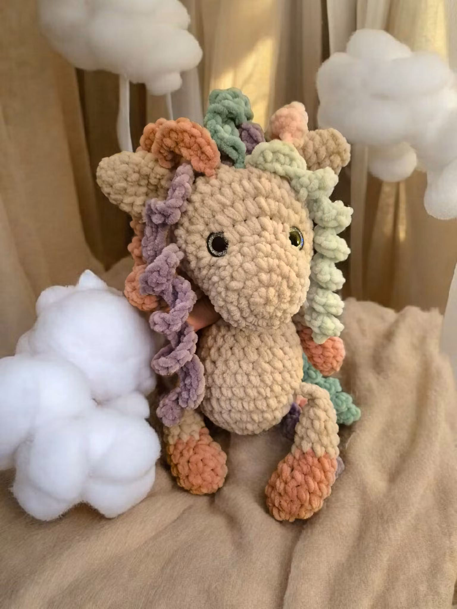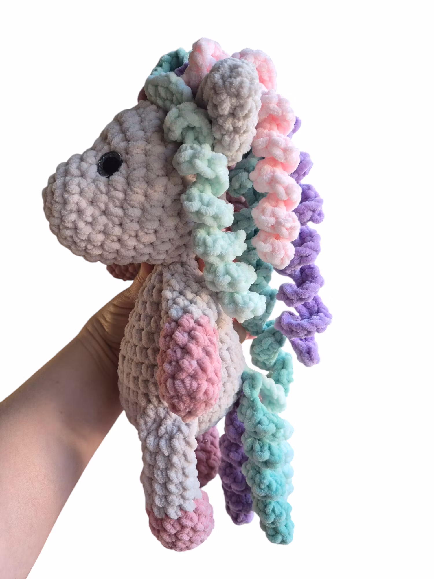 Söt och supermjuk virkad häst med sagolik man och svans. Glittriga ögon :)